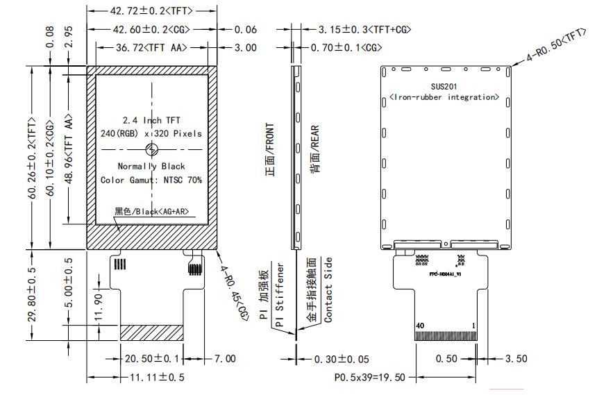 | 2.4 寸TFT LCD240*320高亮度抗反射顯示屏IPS 全視角 ST7789 TFT-H024A1QVISTKG40 | TFT顯示屏 | 240x320 |